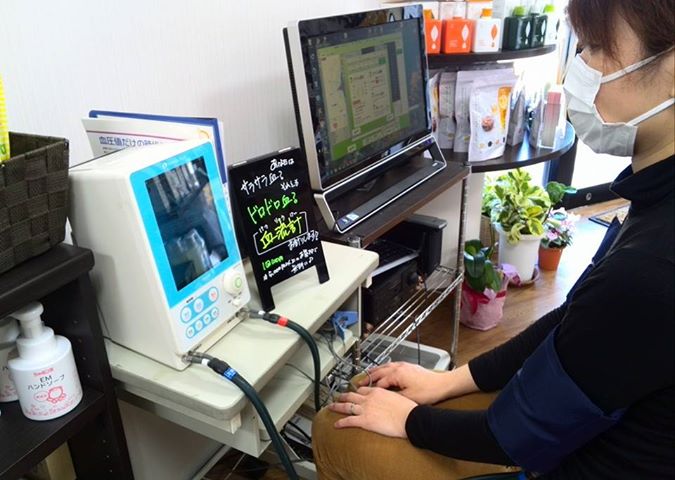 アート薬局には、両腕で測定する血流計が設置してあります。