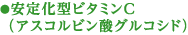 水溶性ビタミンの代表格であるビタミンCは熱や胃酸に壊れやすいため、安定化型ビタミンC「アスコルビン酸グルコシド」として配合しています。