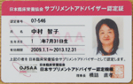 NRサプリメントアドバイザー(日本臨床栄養協会認定)を取得しました。(2008年12月認定,2023年12月更新)